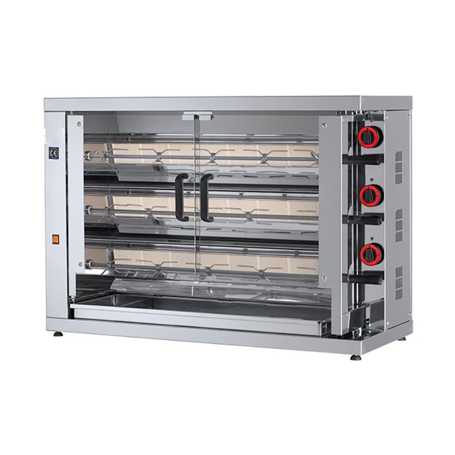 SUD CHR spécialisé dans le matériel de cuisine professionnelle vous propose cette rôtissoire de 3 broches pour la cuisson de 15 à 18 poulets.