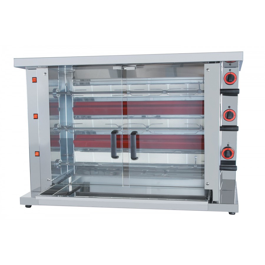 SUD CHR spécialisé dans le matériel de cuisine professionnelle vous propose cette rôtissoire de 3 broches pour la cuisson de 15 poulets.