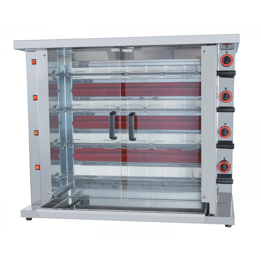 Conçue dans un souci d’utilisation simple et rapide en parfaite autonomie, cette rôtissoire de grande capacité est équipée de broches facile a l’emploi pour l’embrochement direct de pièces de volailles