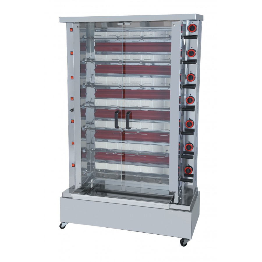 Conçue dans un souci d’utilisation simple et rapide en parfaite autonomie, cette rôtissoire de grande capacité est équipée de broches facile a l’emploi pour l’embrochement direct de pièces de volailles