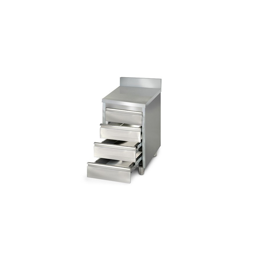 SUD CHR spécialisé dans le matériel de cuisine professionnelles vous propose ce placard 4 tiroirs adossée.