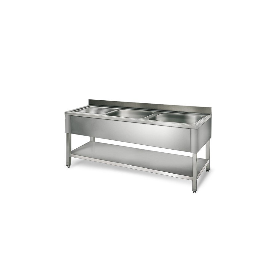 Table de rinçage égouttoir G / 1600 mm 2 éviers prof.700