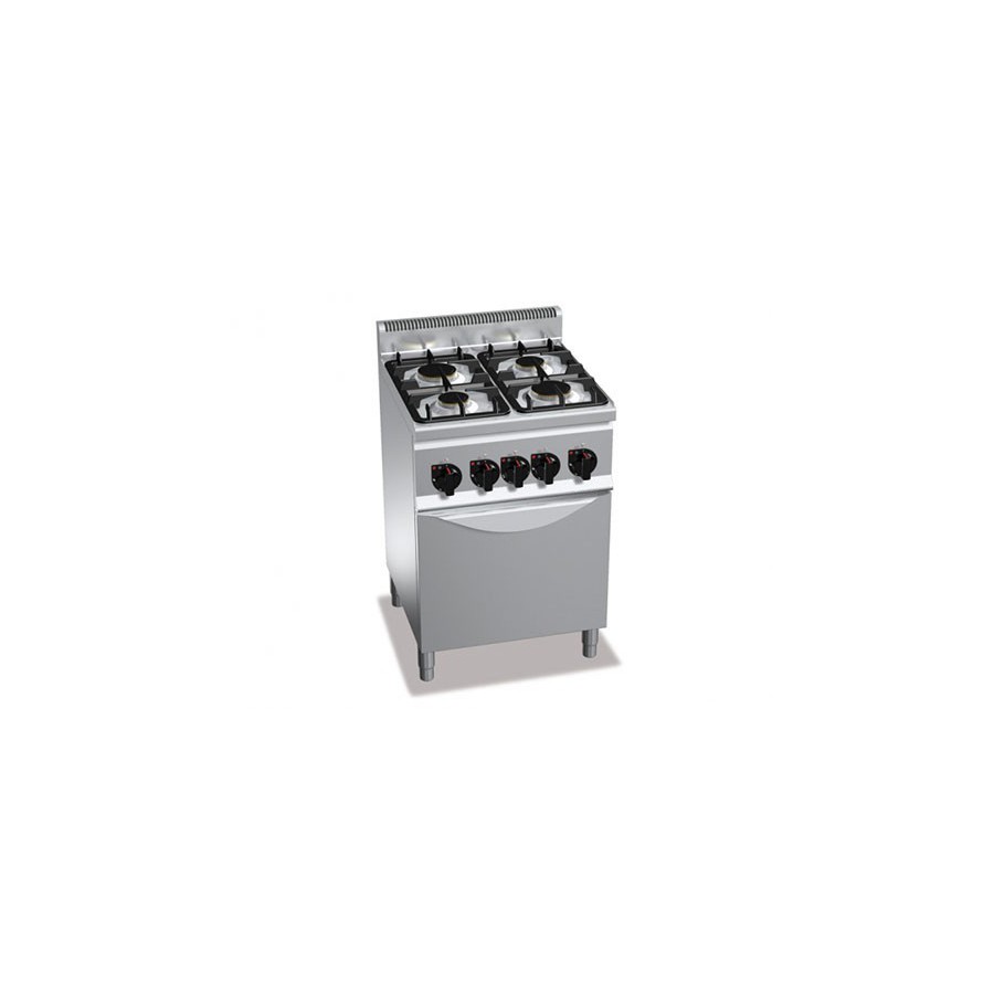 Cuisinière gaz 4 brûleurs (12.4kW) sur four gaz (3.5kW)