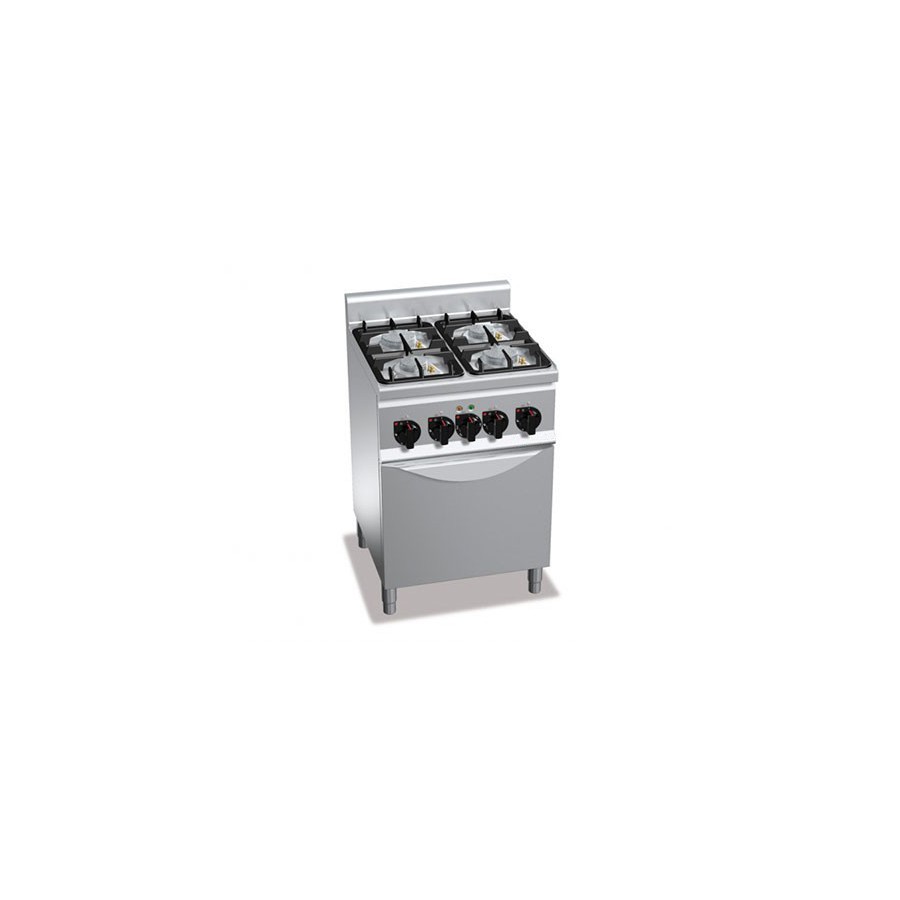 Cuisinière gaz 4 brûleurs puissants (19kW) sur four électrique (3kW)