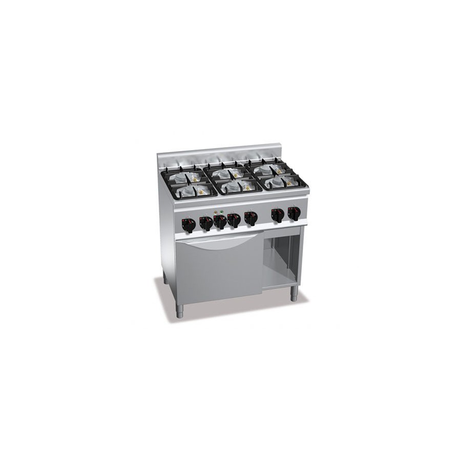 Cuisinière gaz 6 brûleurs puissants (28.5kW) sur four électrique (3kW) et compartiment neutre