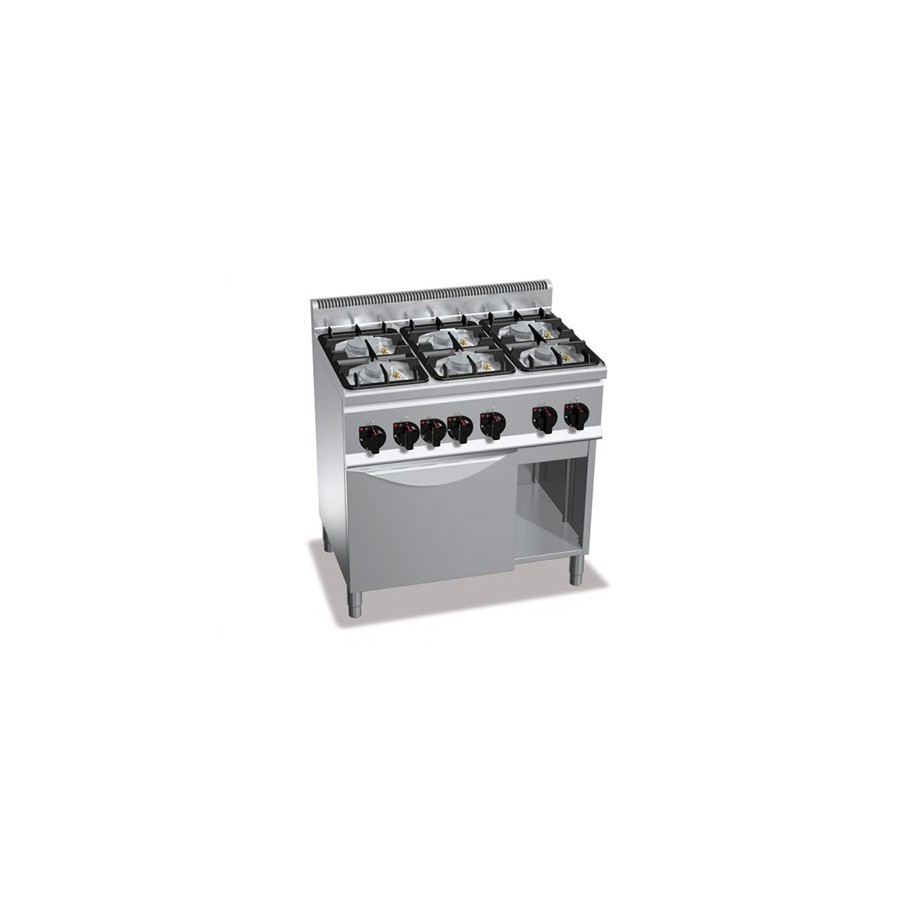 Cuisinière gaz 6 brûleurs puissants (28.5kW) sur four gaz (3.5kW) et compartiment neutre