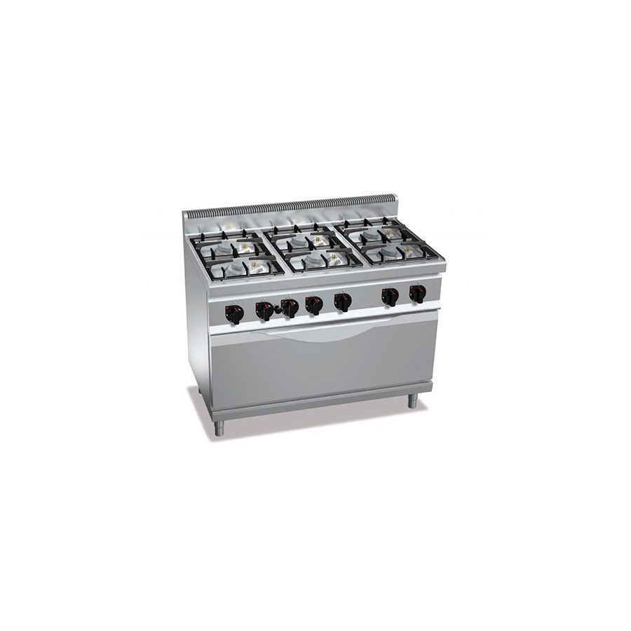 Cuisinière gaz 6 brûleurs puissants (33.5kW) sur four gaz puissant (12kW)