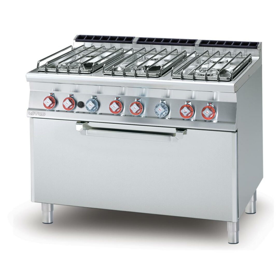 Fourneau gaz 6 feux sur four électrique statique GN2/3 – PROFONDEUR 700 – LOTUS