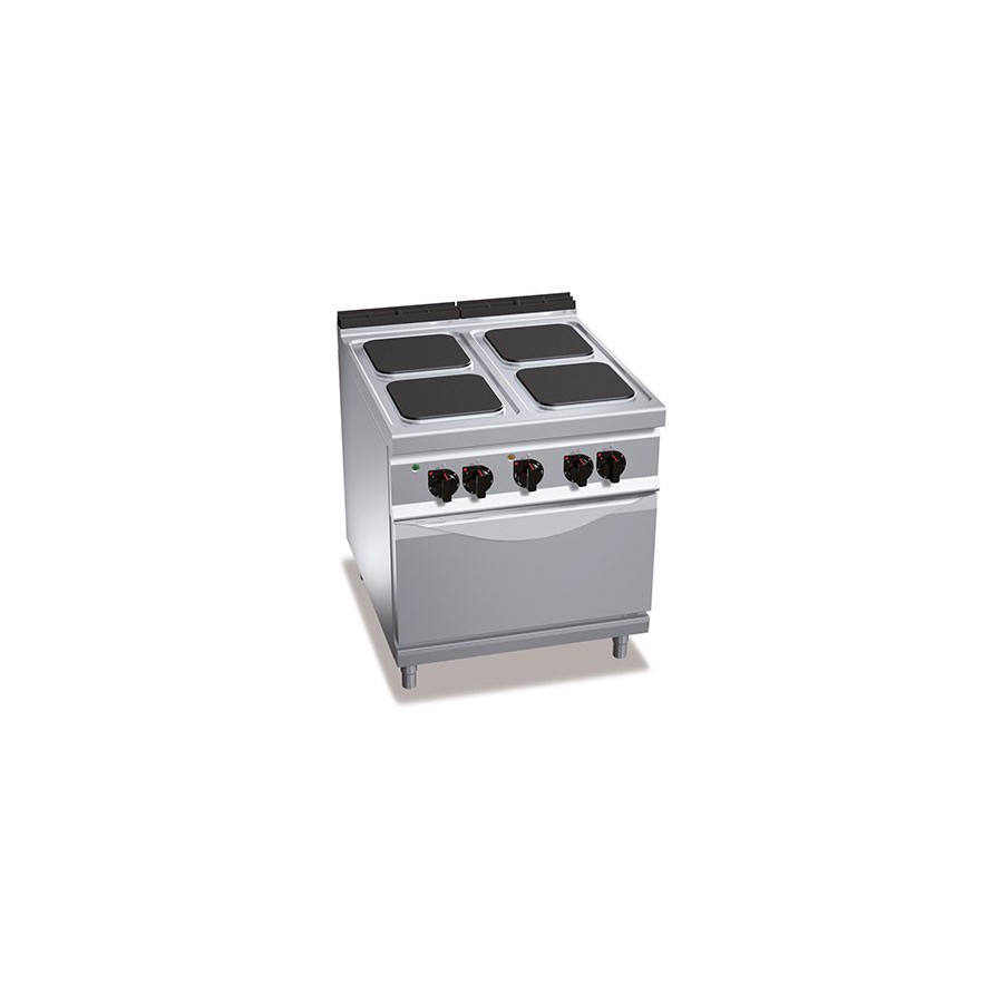 Cuisinière électrique 4 plaques carrées (14kW) sur four électrique (3kW)