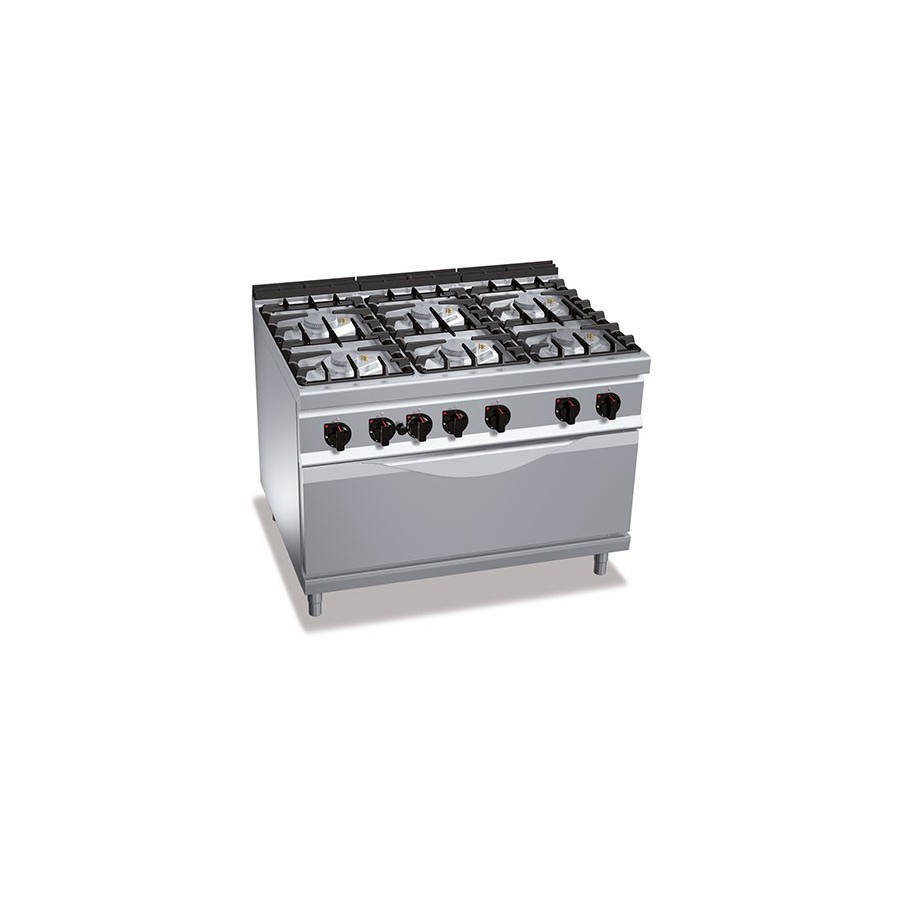 Cuisinière gaz 6 brûleurs puissants (48kW) sur four gaz puissant (12kW)