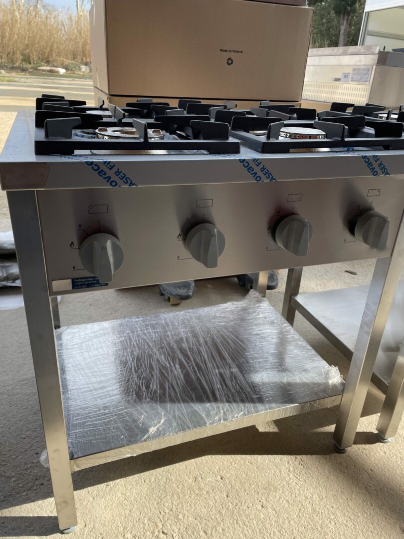 PIANO DE CUISSON 4 FEUX GAZ VIF 80X70 SUR PIEDS