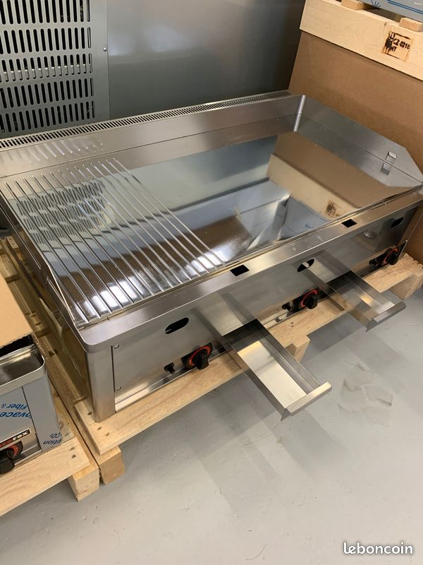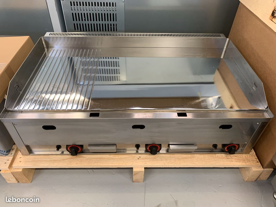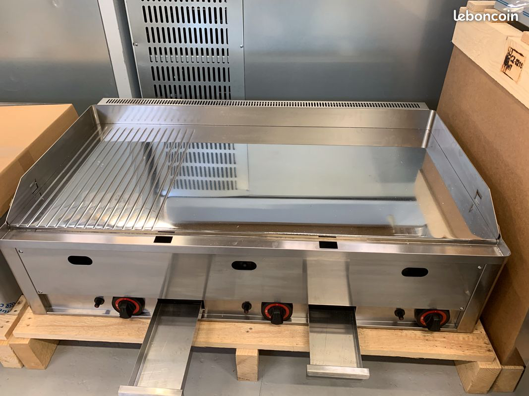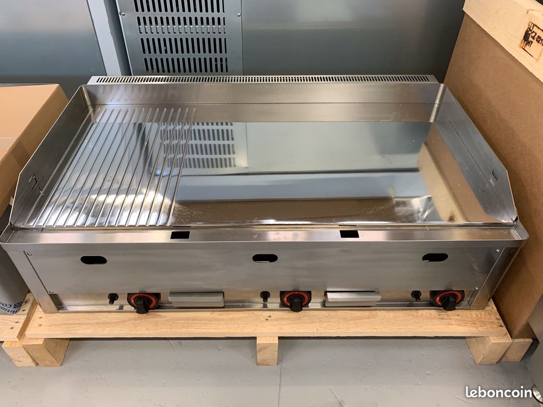 Plancha plaque a snacker gaz chrome 99 cm 2/3 lisse 1/3 rainuree