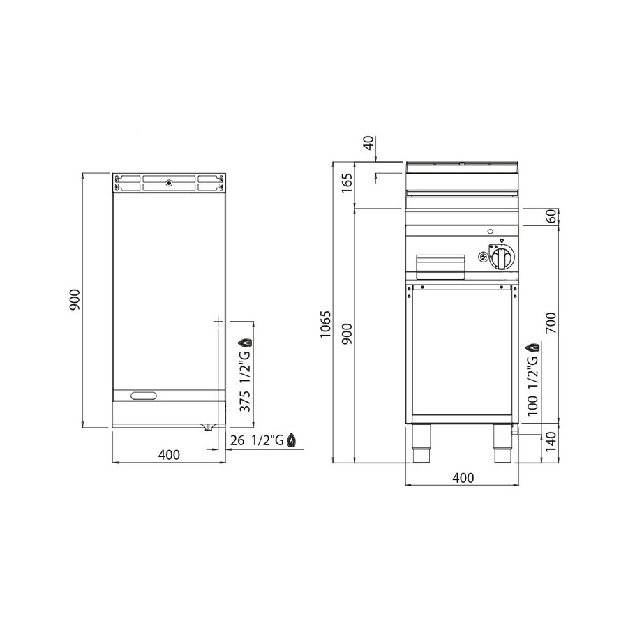 Plaque de cuisson gaz lisse 396 x 667 mm sur pieds