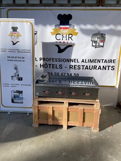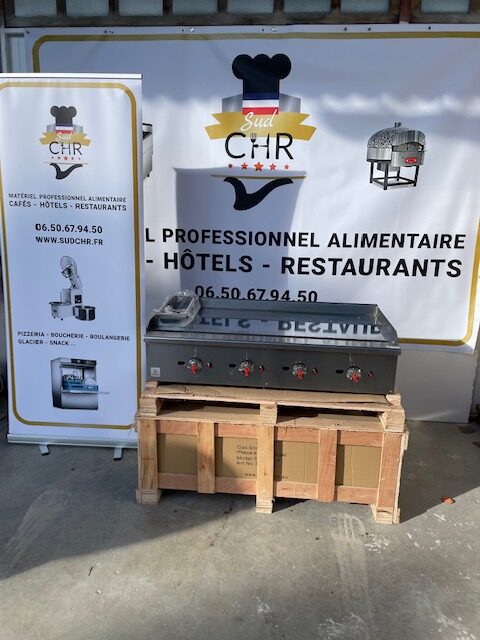 SUD CHR spécialisé dans le matériel de cuisine professionnelle vous propose cette plancha plaque de cuisson gaz 4 zones de chauffe .
