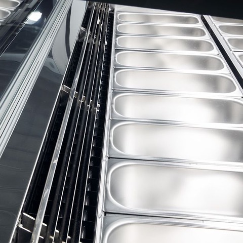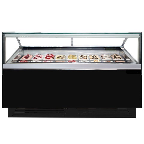 Offrez à vos crèmes glacées et sorbets une exposition haut de gamme grâce à notre comptoir de style aux courbes modernes . Notre vitrine réfrigérée supporte jusqu’à 18 bacs. Ainsi, vous pouvez exposer un grand nombre de parfums différents. Grâce un froid uniformément réparti dans tout l’appareil tout vos produits resteront à parfaite température.