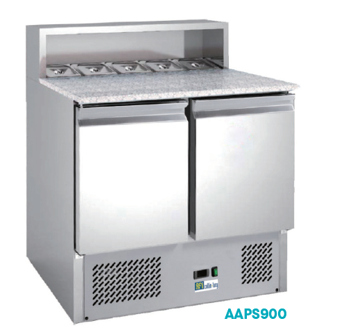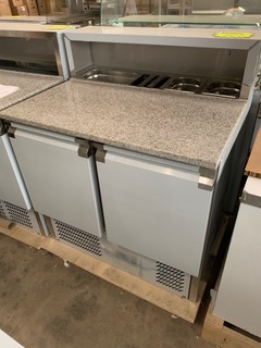 Sud CHR, votre meilleur rapport qualité prix en matériel professionnel de cuisine vous propose ce Meuble à pizza 2 portes. Autant fonctionnel que compact, il permet le stockage de 240 litres de marchandises et offre un plan de travail en granit de 90 sur 70 cm. En ajoutant les 5 emplacements pour bacs GN 1/4, vous aurez l’outil parfait, alliant ergonomie et efficacité. Gain d’espace et gain de temps, un atout majeur pour votre  pizzéria.