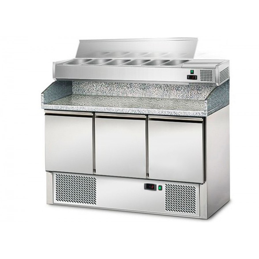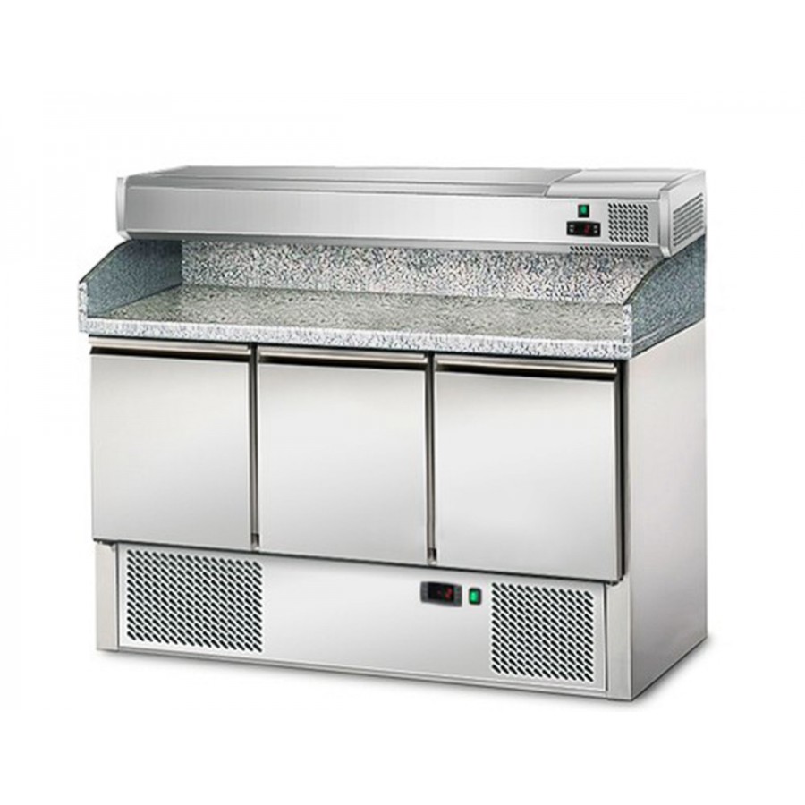 Idéal pour la préparation des pizzas, salades et sandwichs grâce a son comptoir de préparation avec un plan de travail en marbre qui reste froid. .