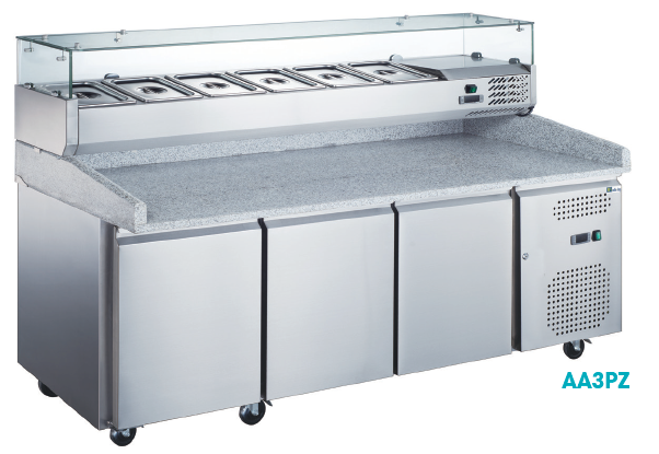 Sud CHR, votre référence en tour réfrigéré avec roulettes pour pizzéria vous propose ce meuble à pizza 3 portes sur roulettes. Super fonctionnel et compact, il sera facile à manipuler ou déplacer grâce à ses roues. Ergonomique et référence d’efficacité, ce meuble de préparation de pizza vous offre un plan de travail en granit de plus de 2 mètres et 9 emplacement pour bacs GN 1/3 monté sur un espace de stockage de marchandise de 585 litres.