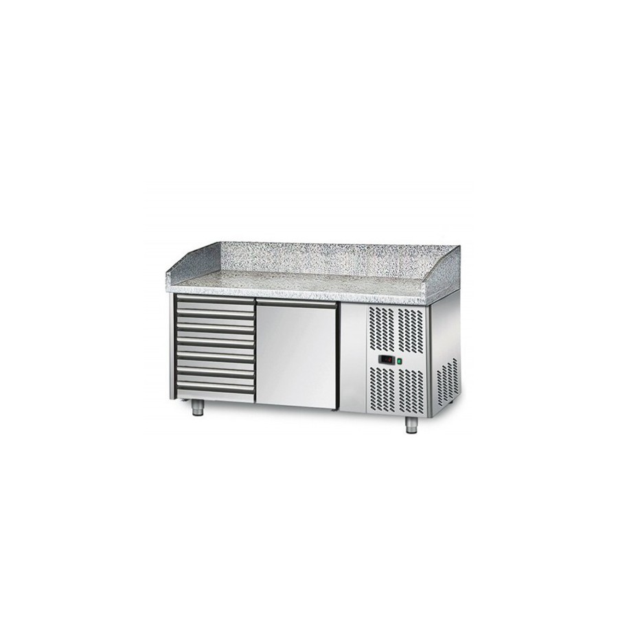 SUD CHR, spécialiste dans le matériel de cuisine professionnelle vous propose ce meuble à pizza de 1 porte,7 tiroirs plan de travail en granit.