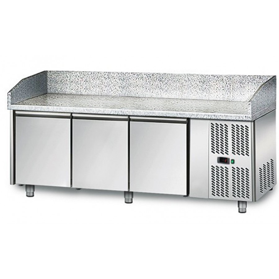 Equipez de d’un grand plan de travail en granit et de 3 portes, ils vous offrira une grande capacité de stockage à porter de main, concervera vos aliments aux frais et vous travaillerais sur une grande surface de travail utile, agréable et efficace.