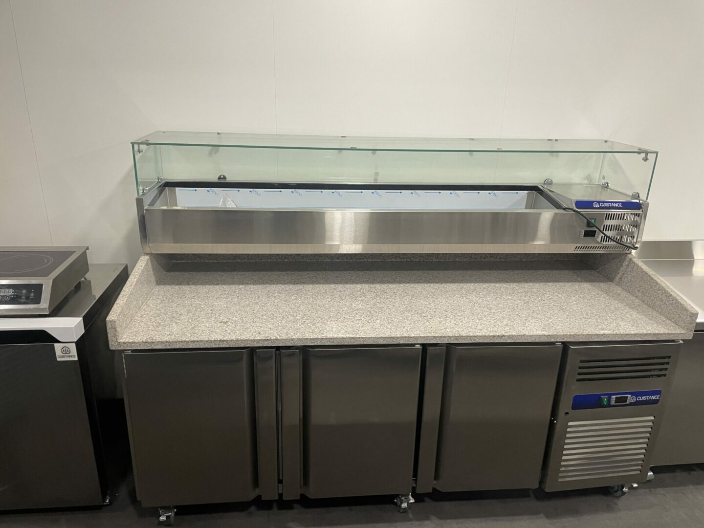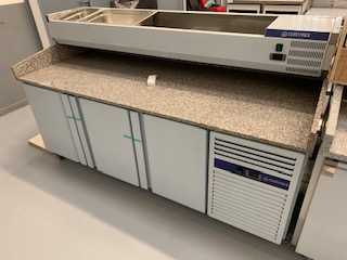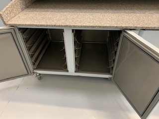 Sud CHR, votre fournisseur de tour réfrigéré avec roulettes pour pizzéria vous propose ce meuble à pizza 3 portes sur roulettes. Très fonctionnel, compact et facile à déplacer, il vous permettra de travailler de manière efficace et optimale. Vous prendrez plaisir à travailler sur son plan de travail en granit de 2m45  avec à porter de main pas moins de 9 emplacements pour bacs GN.  Tout ceci surmontant un espace de stockage de marchandise réfrigéré de 540 litres.