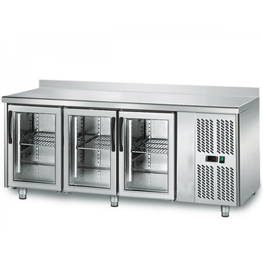 La société SUD CHR vous propose cette table réfrigérée vitrée de gamme 700, équiper de 3 portes avec dosseret.