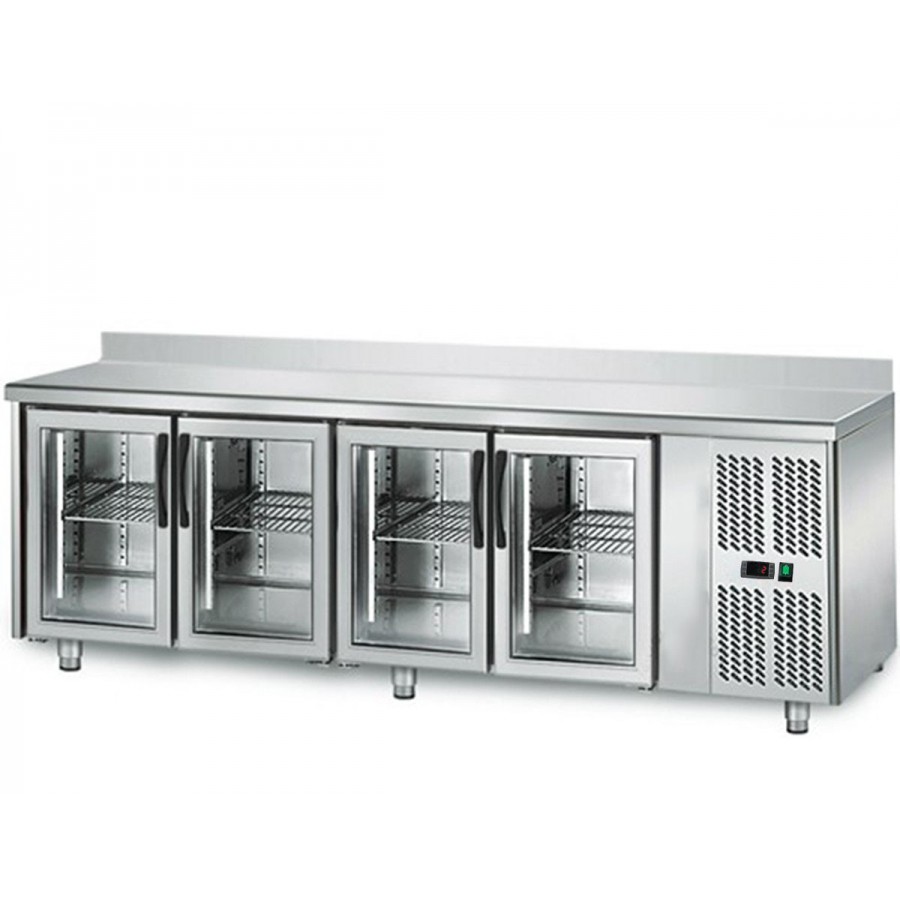 Table réfrigérée 700 vitrée / 4 portes adossées professionnelle