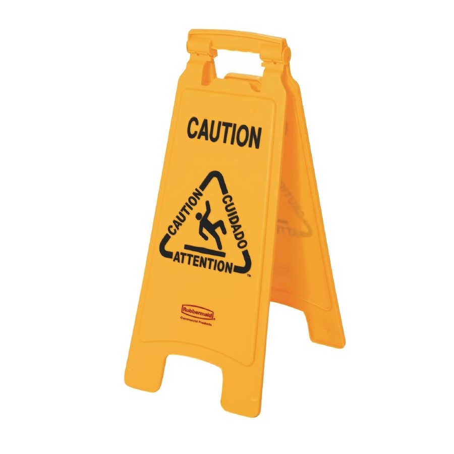 Message d’avertissement « Attention » imprimé en anglais, français et espagnol pour une communication à un maximum de personnes. Protection contre les glissades et chutes. Pliables afin d’optimiser l’espace de rangement.