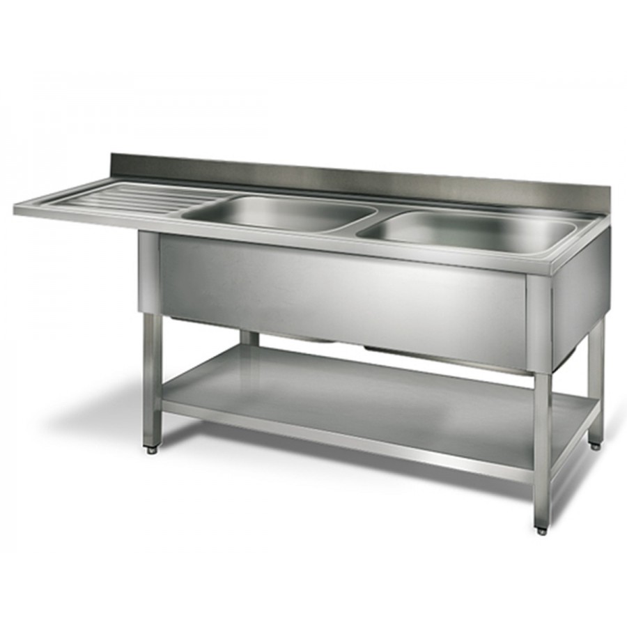 Table lave-vaisselle 2 éviers prof.700 – égouttoir G / 2000 mm professionnelle