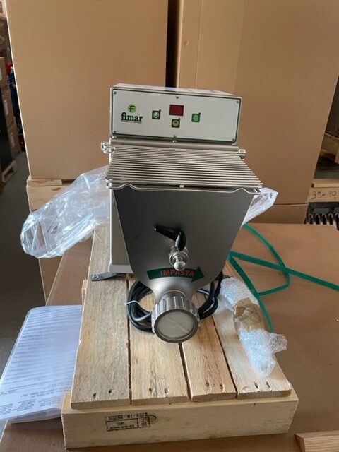 cuve complètement extractible pour un nettoyage facile et rapide. Le modèle est équipé d’un orifice d’extrusion avec refroidissement à eau et d’un couteau pour couper les pâtes.