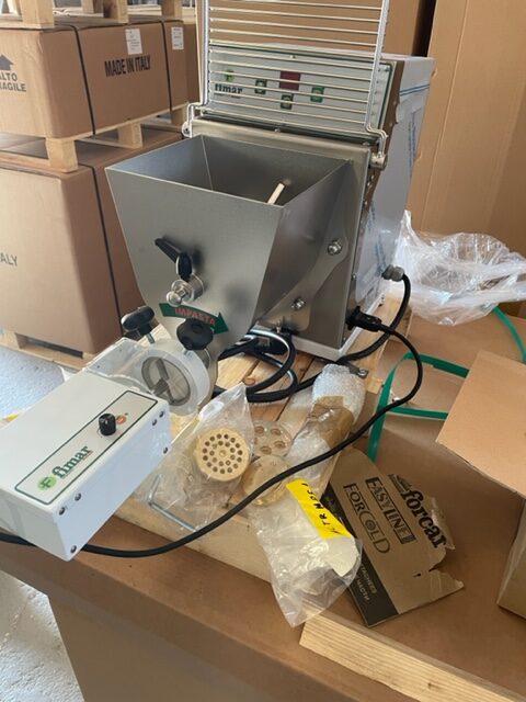 Machine à pâtes fraîches pour mélanger et mouler des pâtes fraîches de différentes formes.