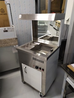 Ce poste de salage est conçu spécialement pour les snacks. Il vous permet de déposer vos barquettes de frites et de les saler en même temps. Le meuble est équipé d’ ampoules chauffantes qui garderont vos frites chaudes et croustillantes.